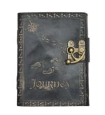 vintage handmade leather journal. Crafted with genuine leather, it radiates authenticity and charm, perfect for those who appreciate classic craftsmanship. The premium antique lock closure adds a touch of elegance and security, ensuring your thoughts and memories are safeguarded within its pages. Inside, you’ll discover 200 brown handmade pages, providing ample space for your musings, sketches, and stories to unfold. Whether it’s for journaling, sketching, or planning, this versatile journal is a timeless companion for your creative endeavors. Treat yourself or a loved one to this exquisite piece, a celebration of tradition and creativity